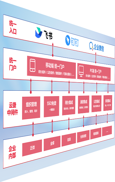对协作平台提供支持服务,,,,支持企业应用与协作平台对接,,包含组织同步、、、消息集成、、、待办集成等。。支持目前主流的协作平台:钉钉、、、、企微和飞书。。